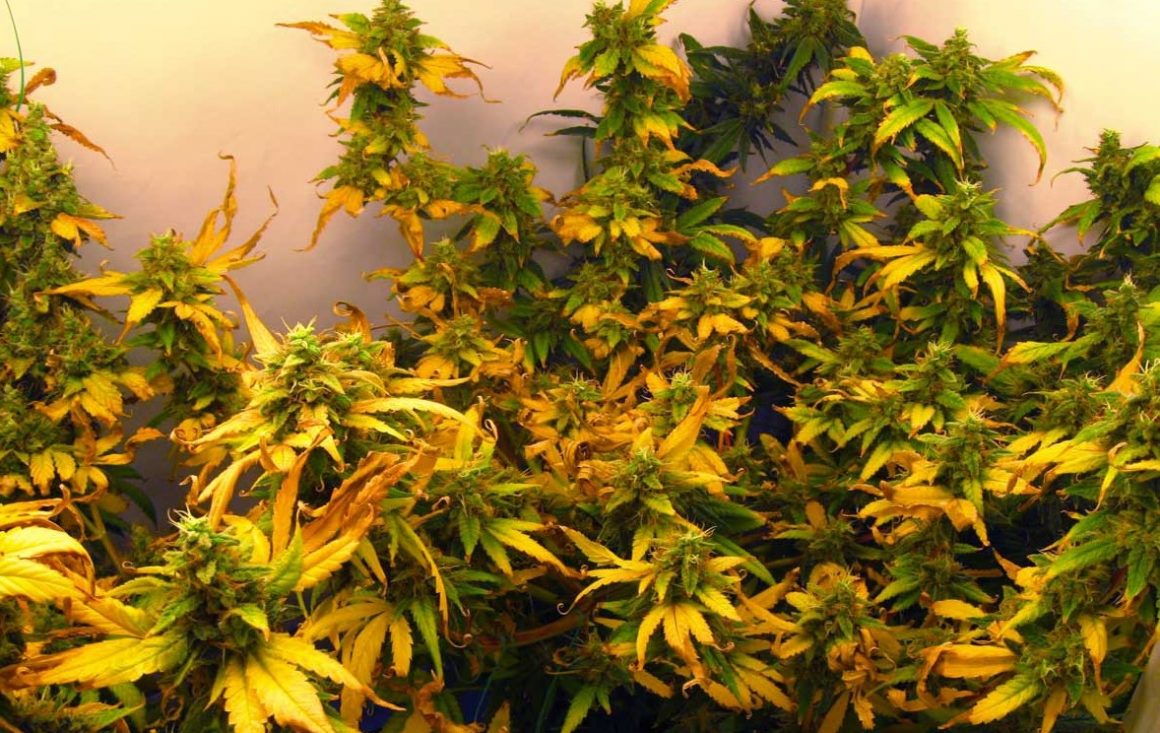 - Чрезмерное использование удобрений. В погоне за быстрым ростом гроверы нередко превышают рекомендуемые дозы подкормки конопли. Это одна из самых распространённых причин ожогов каннабиса.